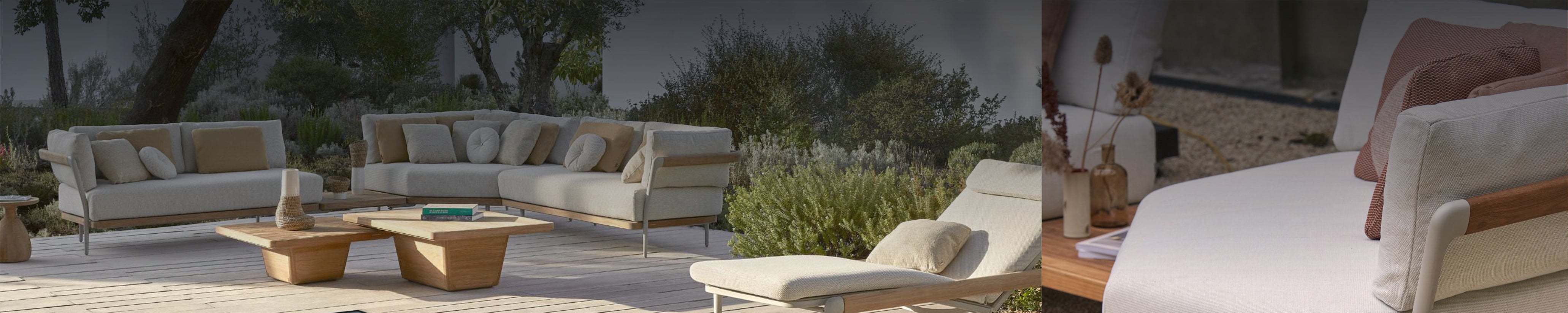 FLEX ist eine modulare Outdoor-Kollektion, die auf Anpassungsfähigkeit und Komfort ausgelegt ist. Gartensofas und Lounge-Elemente lassen sich frei kombinieren und passen sich unterschiedlichen Terrassen- und Gartensituationen an. Die Gestaltung bleibt reduziert, die Nutzung vielseitig.