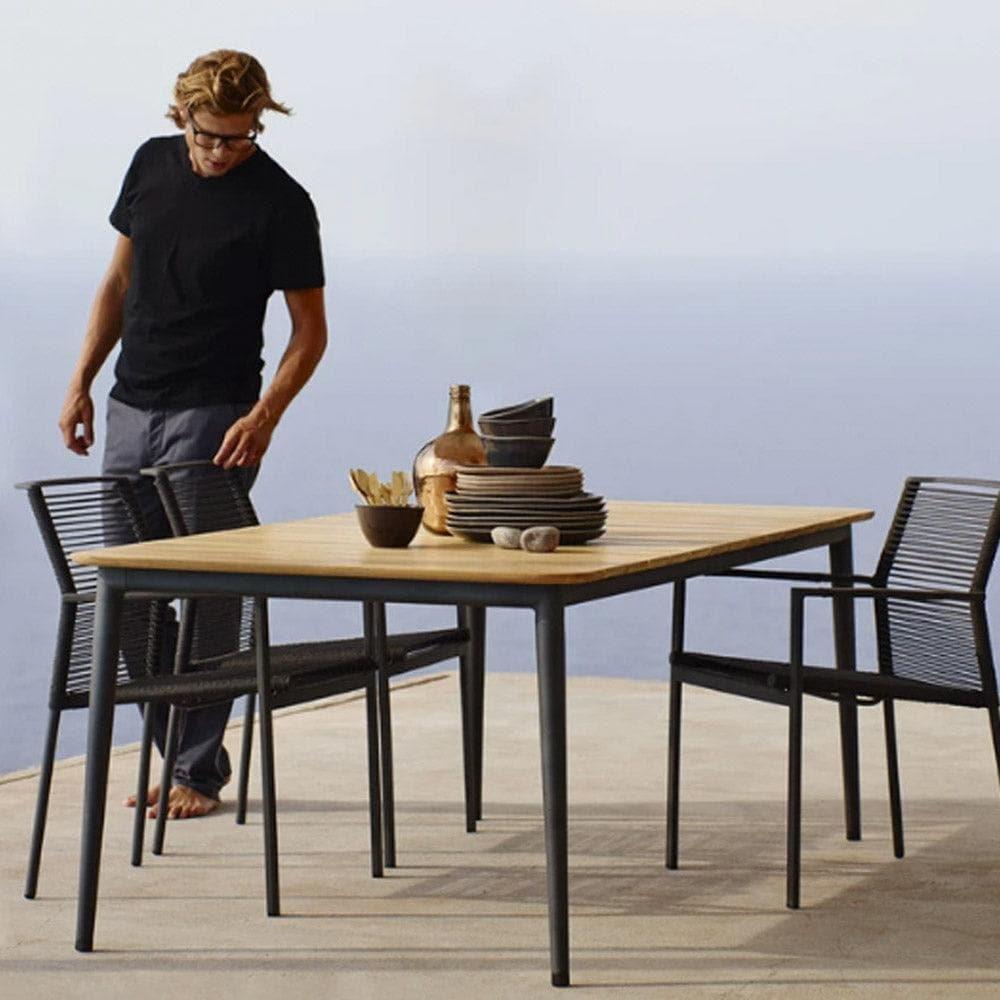 Ein besonderes Merkmal des Edge Gartenstuhls ist seine Stapelbarkeit, die ihn zur idealen Wahl für Orte mit begrenztem Stauraum macht. Die Sitz- und Rückenlehne sind aus Cane-line Rope gefertigt, einem innovativen Material, das nicht nur langlebig und pflegeleicht, sondern auch angenehm auf der Haut ist. Diese Kombination sorgt für ein unvergleichliches Sitzerlebnis, das Entspannung und Stil perfekt miteinander vereint.
