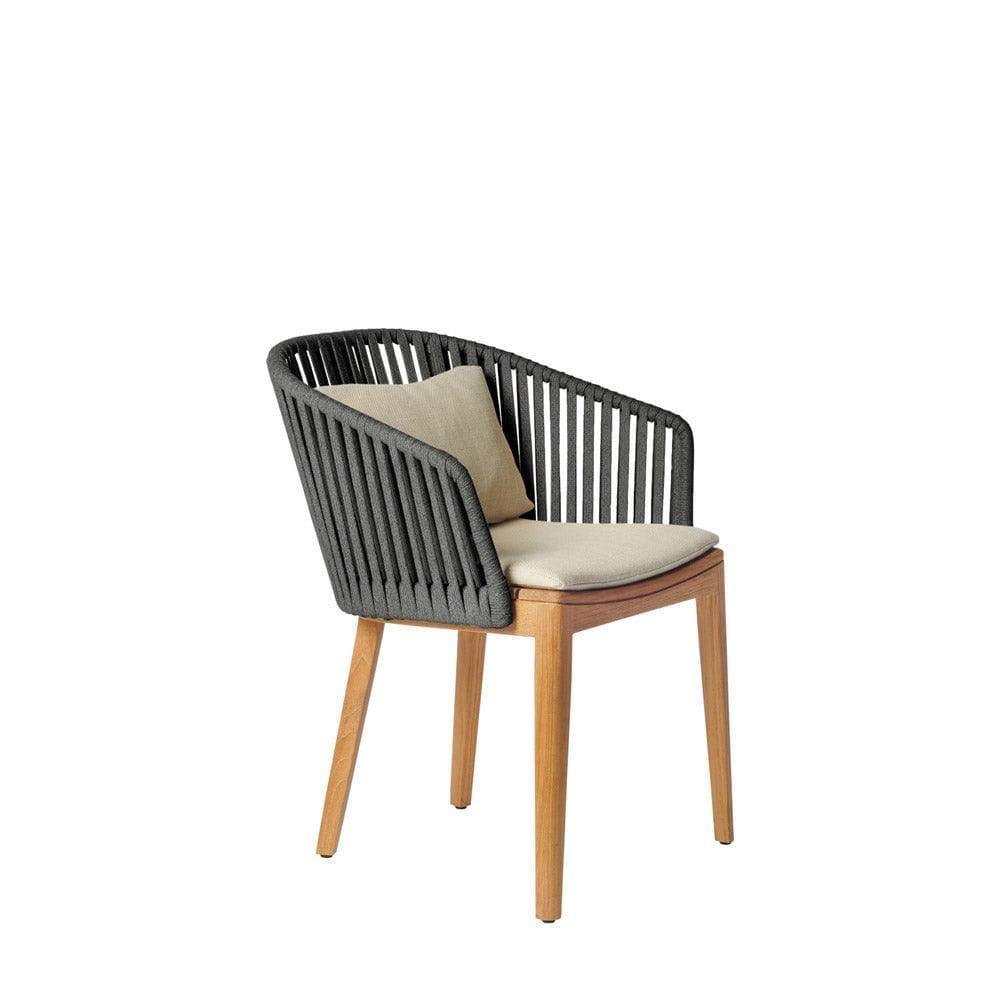 Besonders hervorzuheben ist die Witterungsbeständigkeit des Materials, das dennoch eine natürliche Optik und Haptik beibehält. Dies macht den MOOD Armlehnstuhl nicht nur zu einer stilvollen, sondern auch zu einer praktischen Wahl für Ihren Außenbereich. Der Komfort wird durch die Option, passende Kissen aus der vielfältigen Tribù-Farbpalette auszuwählen, noch erhöht. Die Kissenfüllung aus Trockenschaum ist wasserdurchlässig, wodurch sie ideal für den Einsatz im Freien geeignet ist.
