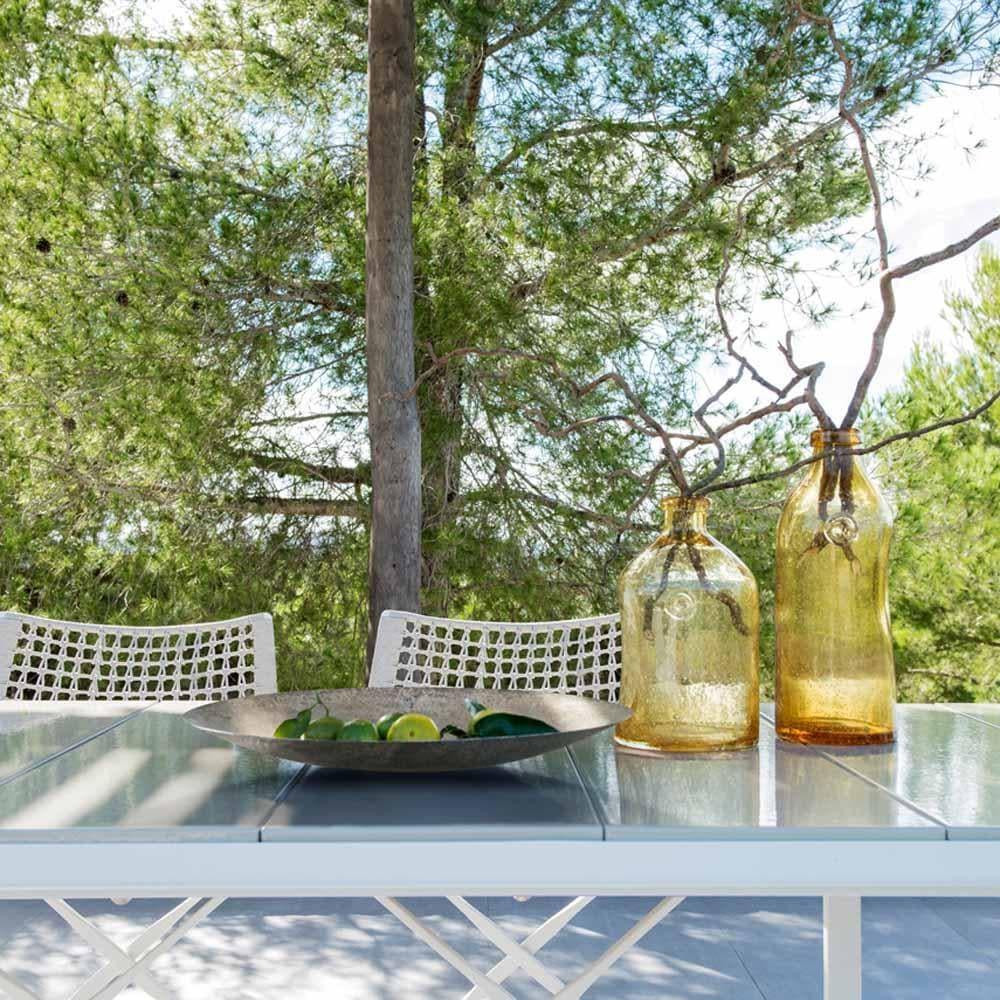 Die Tischplatte des NOX ist aus glasiertem Lavastein gefertigt, einem außergewöhnlichen Material, das von der Natur selbst geformt und von Tribù in ein Meisterwerk verwandelt wurde. Die Lamellen des Lavasteins stammen aus dem Vesuv und sind beeindruckende 400 Jahre alt. Sie spiegeln den Himmel wider und erinnern an das sanfte Plätschern von Wasser, was eine ruhige und harmonische Atmosphäre schafft. Die farbige Glasur wird sorgfältig von Hand aufgetragen und durch das Brennen bei hohen Temperaturen entsteht eine subtile Craquelé-Oberfläche. Diese verleiht jedem Tisch ein einzigartiges Aussehen und macht die Oberfläche hitze-, wasser-, UV- und schmutzabweisend.
