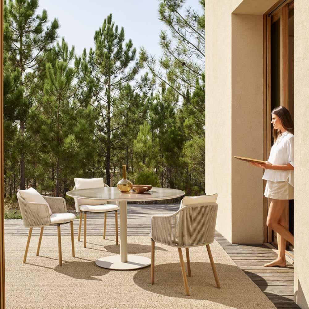 Genießen Sie stilvolle Momente der Entspannung mit dem SENJA Armlehnstuhl von Tribù, einem Möbelstück, das durch seine hochwertige Verarbeitung und erstklassige Materialien überzeugt. Lassen Sie sich von der Kombination aus zeitloser Eleganz und modernem Design inspirieren und verwandeln Sie Ihren Außenbereich in eine Wohlfühloase.
