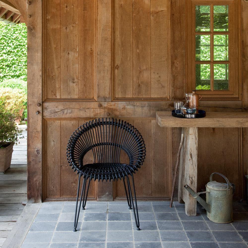 Die Vielseitigkeit des ROXY Gartenstuhls ist eine seiner herausragenden Eigenschaften. Dank der hochwertigen Materialien, aus denen er gefertigt ist, kann er sowohl im Innen- als auch im Außenbereich zum Einsatz kommen. Das Gestell besteht aus robustem, galvanisiertem Stahl, der mit einer eleganten schwarzen Pulverbeschichtung veredelt ist. Diese Basis bietet Stabilität und Langlebigkeit, während das charakteristische Rattan-Geflecht aus Polyethylen dem Stuhl seine wetterfeste Qualität verleiht. So bleibt der ROXY Stuhl auch bei wechselnden Witterungsbedingungen ein verlässlicher Begleiter.